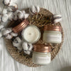 Encased in a timeless vessel and crowned with a gleaming copper lid, it brings together the rustic elegance of farmhouse charm with a polished, modern aesthetic. Whether gracing a mantle, a guest room, or your holiday table, its presence is both inviting and sophisticated.